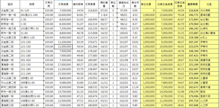 bosimeiya wrote:一年前被出價13萬,不曉得一年後的出價跌破10萬了沒...(恕刪) 10萬?哈哈哈哈哈~~~1051116實價登錄:自己找找哪棟是10萬以下的,連13萬以下都沒有啊。(資料取自FB:淡海新市鎮 房市/房價 搶先報"https://www.facebook.com/groups/house184/")