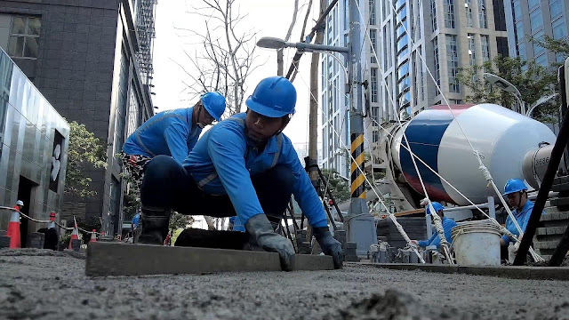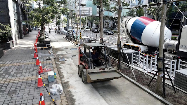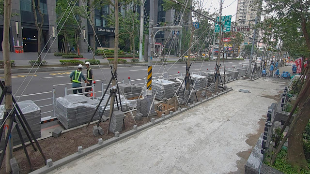 工程地點: 新北市板橋區縣民大道人行道拍攝內容: 鋪磚過程