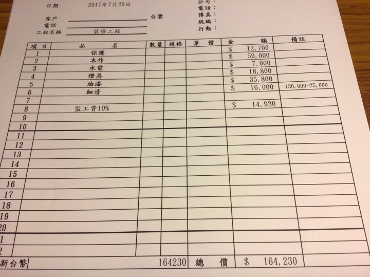 綠意築居的好處是估價金額很接近完工金額,這一點還不錯。
