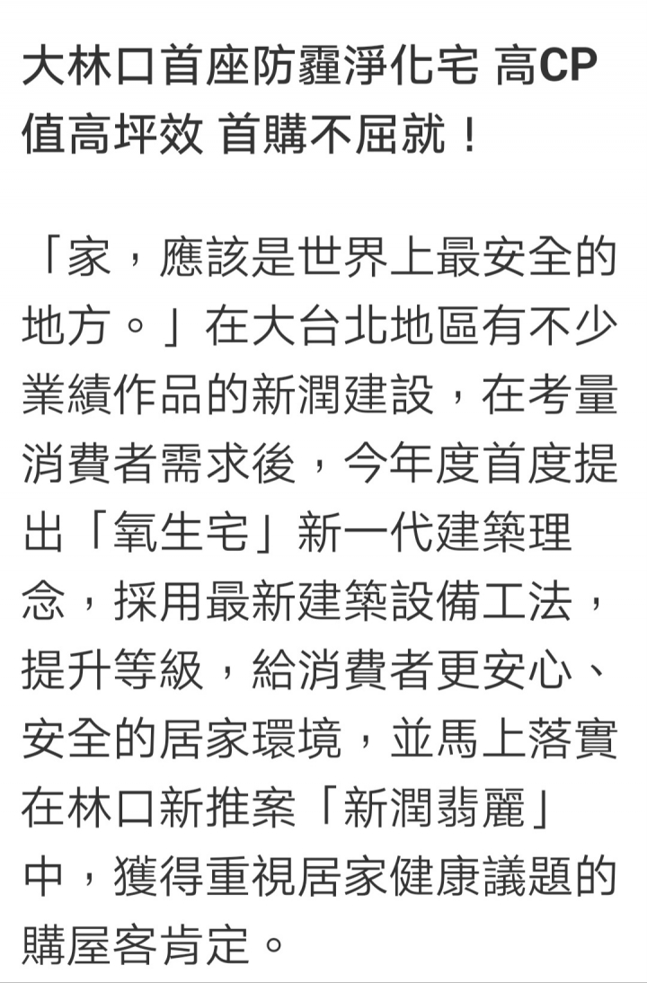 愛與包容 wrote:...(恕刪) 這個小區域400公尺直徑的範圍,5分鐘步行距離,目前有新潤翡麗,新潤鉑麗,昕時代,根津苑,華悅城,甲子園,玄泰V1,富宇敦峰,皇普mvp.....等近10個建案集中在這裏。此處也是距離華亞科,樂善國小,大崗國中及A8長庚商圈,最近的地帶。未來生活機能會快速成形,能夠擺脫一般重劃區,要度過經年累月,長期機能性不足的窘境。<新潤翡麗,鉑麗>就處於此區塊的黃金核心位置,以精省空間規劃,低總價氧生宅產品為主,又是優質上市品牌建商,首購網友們不可輕忽!