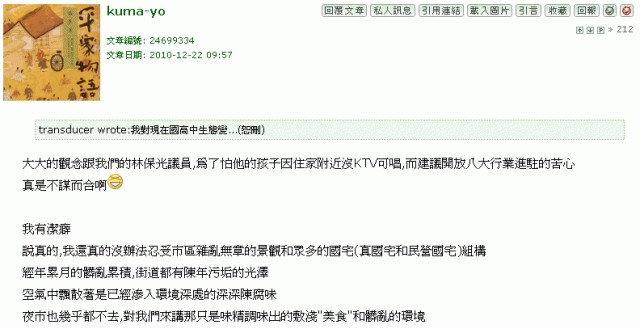 大大的觀念跟我們的林保光議員,為了怕他的孩子因住家附近沒KTV可唱,而建議開放八大行業進駐的苦心