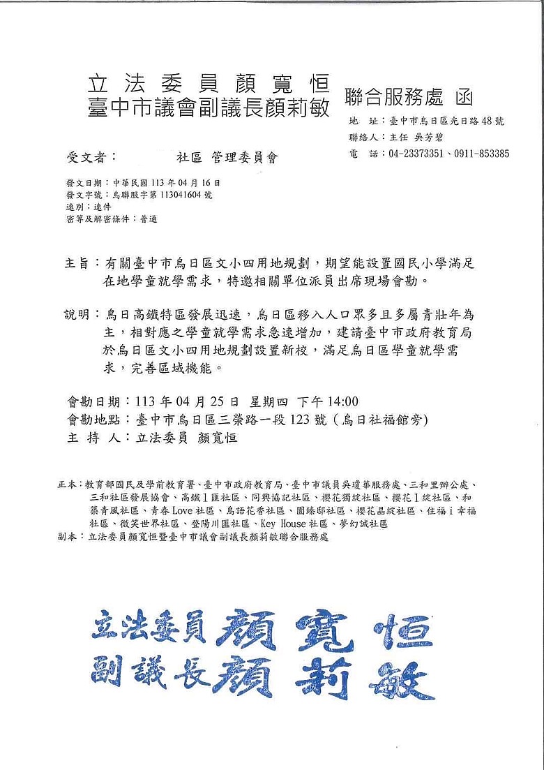 另密切關注該區學生數增長趨勢,後續評估運用烏日區文小4學校用地新設學校。