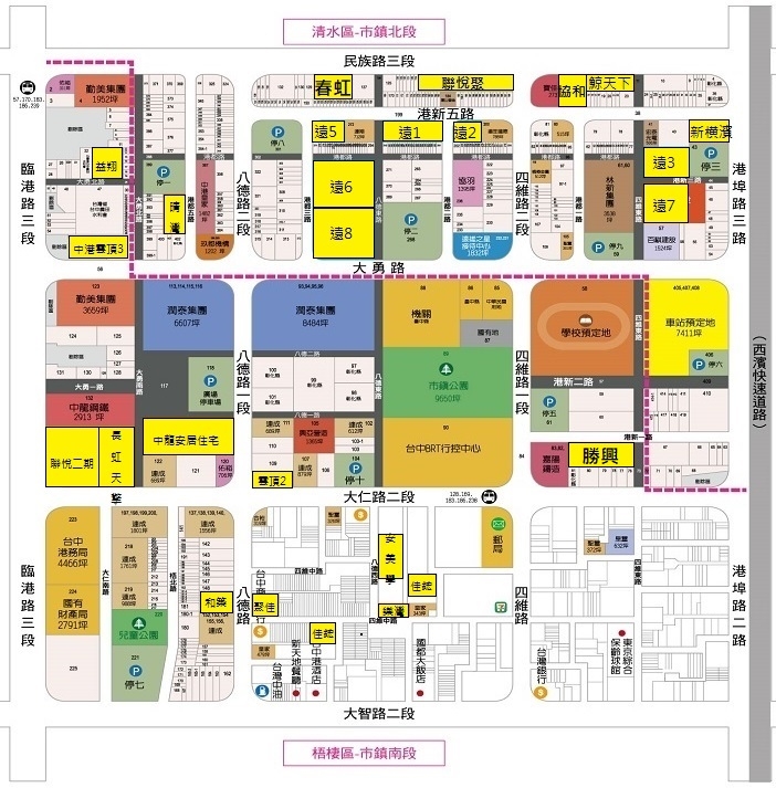 此區域新增新朋友。寶佳在此區域推的量算第一了吧。-----------------------------------------------------------------------------------------------勝興建設股份有限公司委託吳六合建築師事務所申請 梧棲區鎮南段 74、75 地號等 2 筆土地(商業區)地上 22 層地下 4 層店鋪、集合住宅新建工程案,提請 審 查。