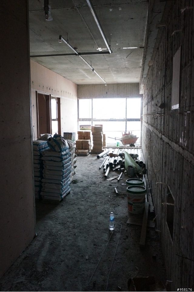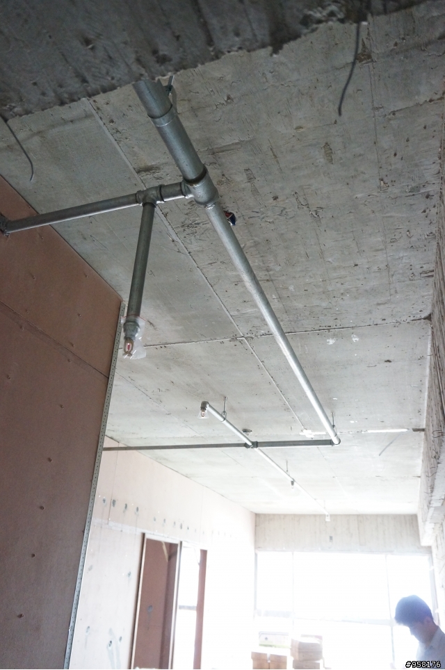 今天12/08/24 - 勝美漾高樓層的消防管線的灑水頭也太低了吧惱人的消防管線,天花板實量高2.85米,如果到時做天花板蓋住管線高度只有2米7而已!!!!!!!!!!!鋪完地磚的樣子(此為C3 6F)不知為什麼牆壁和地板接縫處,有潮濕的感覺?