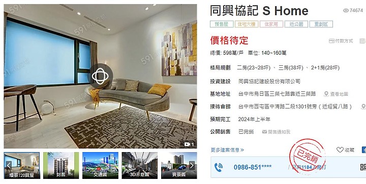 烏日高鐵特區的預售案「同興協記 S Home」2020年5月取得建照10月公開銷售,現在已蓋到13樓,最後一戶也完銷了,實登一年成交均價28.05/坪,最低價26.12/坪,最高價29.4/坪,應該是特區2字頭最後一案了,除了另一案中山路北側包圍加油站的「浩瀚豐世紀」實登未超過3字頭(最高27.93/坪),但目前開價29-32/坪,後續的實登應該會超過30/坪。