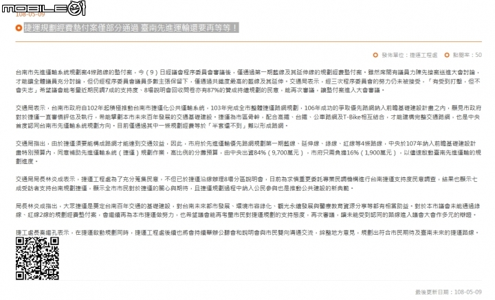 kai-kai2 wrote:以台灣的醫療資源及水準要在路邊光明正大的過世 , 是有點難度壓 你怎麼會拿中國照片裝成是在台灣使用,要騙台南人對吧 捷運規劃經費墊付案僅部分通過 臺南先進運輸還要再等等!光是看這個台南市政府捷運局的網站