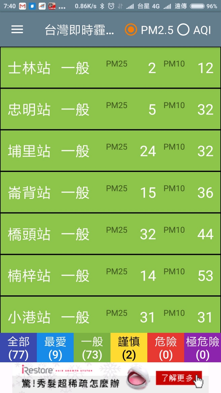 PM2.5高的時候真的要盡量少外出啊!!如果可以的話,甚至能搬走就趕快搬走不是危言聳聽。很多研究顯示PM2.5超標的區域居民罹患肝肺癌風險會提高非常多! (GOOGLE一下就一堆)尤其現代人營養好,工作又操勞,常常有脂肪肝的問題,肝指數就偏高再加上PM2.5超標的空氣,如果又傻傻的在PM2.5超標時在露天環境慢跑想減肥,大量換氣也大量吸進致癌的PM2.5啊! 風險可是會提高非常非常多啊!有小孩的你們忍心自己小孩活在這樣的環境下嗎?或者,你們忍心自己小孩還小就因為父母因PM2.5超標罹癌早早掛掉而變孤兒嗎?EDIGREEN的APP可以下載下來看一下..BADKING wrote:環保署 高雄 前金...(恕刪) 台灣官方開始在自慰了~不意外