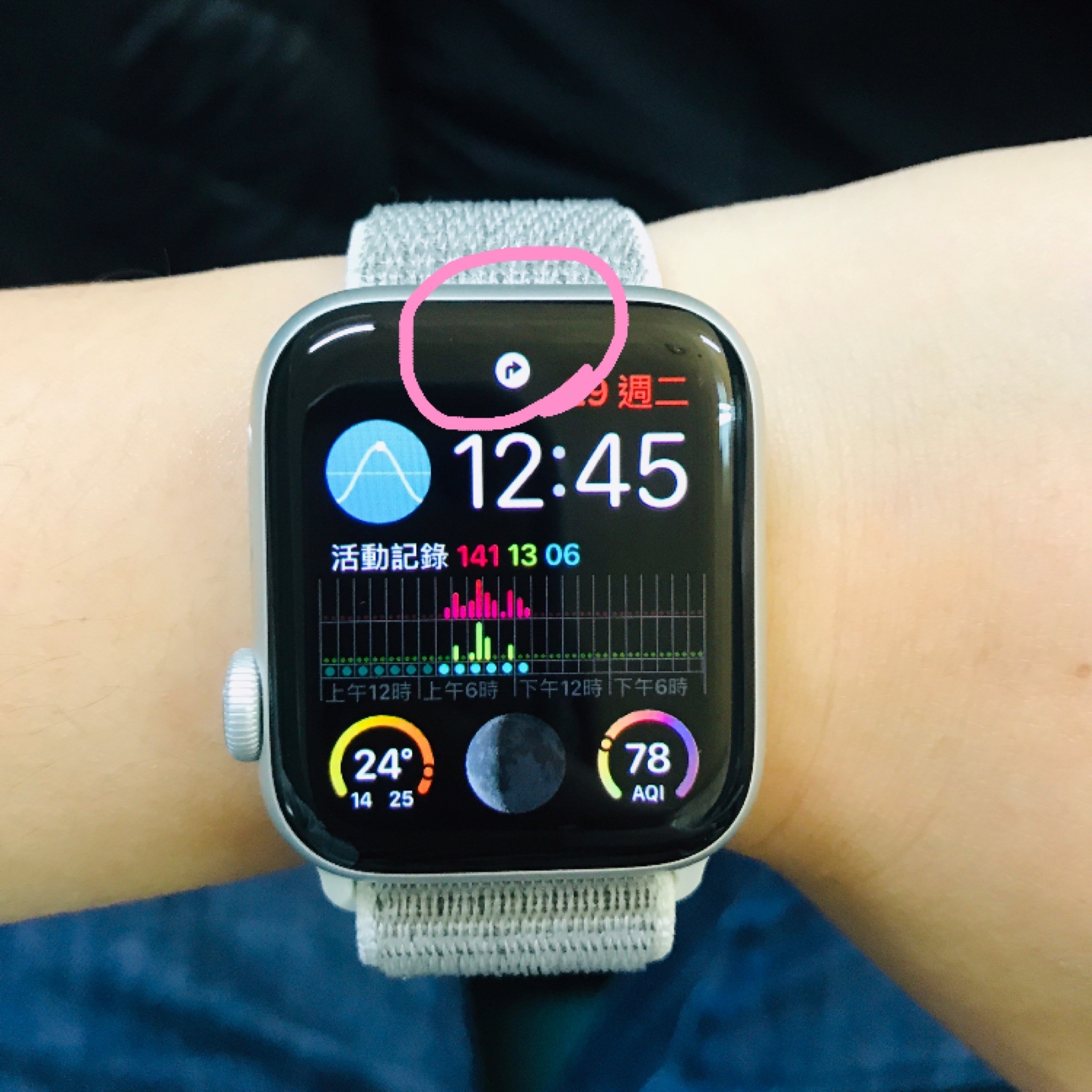 我在蘋果官網上看 apple watch 通知圖像&符號 (如下網址)https://support.apple.com/zh-tw/HT205550沒有看到你這個符號耶!好特別@@你是不是有安裝其他app並開啟程式如你內容所說 開關機後就消失了可能是第三方app的通知感覺看起來有點像地圖的轉彎符號XD另外請教一個問題嗎?看照片 你手錶應該是帶左手吧?刻意把錶冠放在左下角?有什麼特別用意嗎?因為感覺蠻奇怪的 所以提問一下沒其他意思fish qq wrote:請問有大大知道這是...(恕刪)