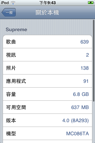 我也是去年年底時買的ipod touch 8G,昨晚升級下載ios4超久的,我只好睡覺讓電腦繼續下載。一覺醒來以為ipod touch已經搞定,結果並沒有。我只好再重來更新一次,這次總算成功了(也是好久的時間)。我也覺得有時會有點鈍鈍的,反應好像有比以前慢一點,尤其是按 home鍵,有時又不會。最大差別是,我原本有20頁,,現在變成11頁,不用像以前要翻頁好久。另外,我才剛買的pocket chef升級後不能玩了,會直接跳回桌面,電子書工具下載了好多書也不能看了,只能等程式作者修正程式 bug 了