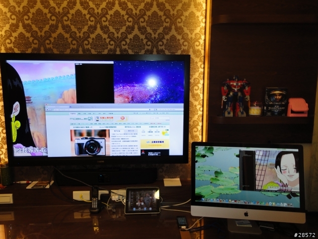 大家的電腦使用環境都好優啊!我家真是有夠亂的,目前放在電視櫃上純粹就是拿來上網、當播放器。打算叫師傅來鑽幾個洞收納一下排線!27的螢幕雖然非常銷魂,但是看影片(蛇姬)放到大螢幕上還是比較爽啦!如果把pc拿來放電視櫃就不那麼賞欣悅目!