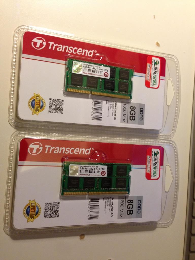 有傳記憶體可能漲價,於是爬文後衝到腦場灑金錢,最後在多翻內心爭擇下,以價錢先決買下沒有標籤Mac專用的記憶體,創見 8G 1600MHz DDR3 CL11