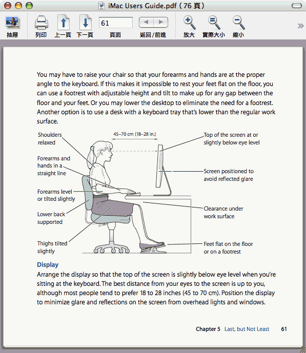 我坐在一般的椅子,iMac 坐在一般的桌子 (都不是特殊訂製或調整過的),