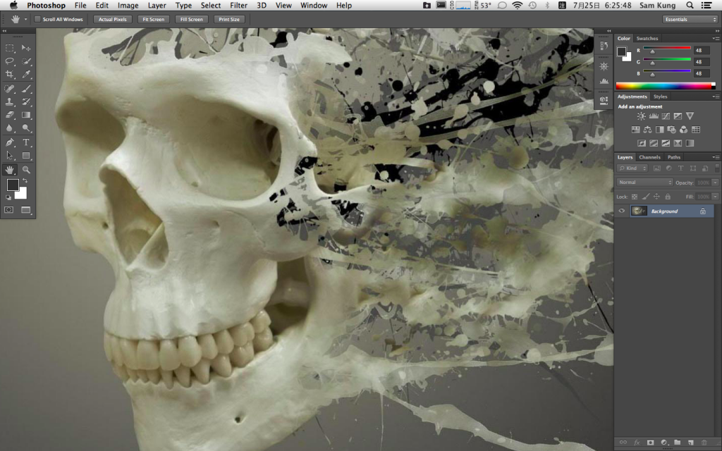 參考用的圖片取自 Free HD wallpapers 的 Liquid Skul Bstract, HD Wallpaper
