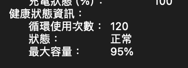 MacBook Pro 14 M1 MAX2022/08/09 買的充電方式大致跟你一樣,有空就充,100%就拔掉電源最佳化電池充電打勾,我在想是不是因為不常使用,有時候下班才看一下Youtue、滑個網頁不然有些人健康度怎麼掉比我快?