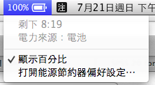 madspider wrote:前天才入手的MBA2...(恕刪) 你還要說一下你的螢幕亮度設定、鍵盤亮度設定能源節約偏好設定有無插著需要充電或供電的USB裝置開著什麼程式這些通通會影響電池估算你不提供的話根本只能隔空抓藥