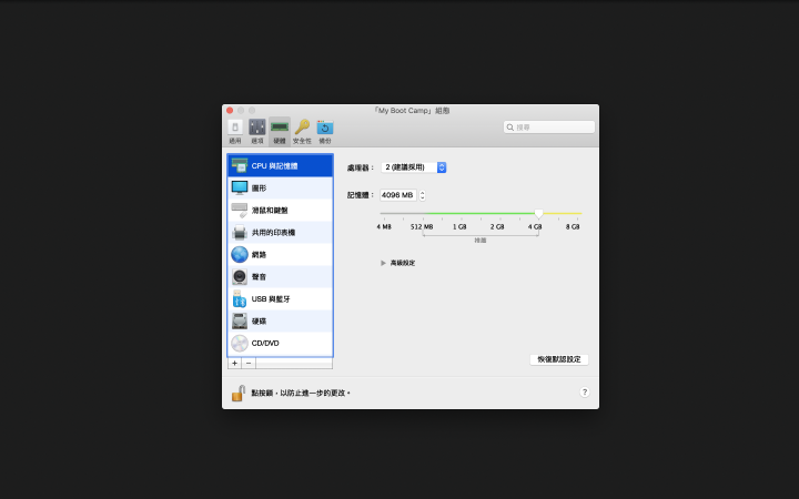 用Parallels desktop,我還以為用Parallels desktop的話,macOS和Windows共用硬碟,那RAM顯示的內容也會一樣.......請問配罝給Windows的RAM容量是人為設定的嗎?還是Windows自己判斷抓取的?那事後可以再變更設定嗎?我幾乎都是用Windows在運行這台筆電,只用2G也太少了吧!萬一我將來要在這台筆電用Windows下載影片、觀看影片、開很多分頁,那不是頓死了。謝謝!