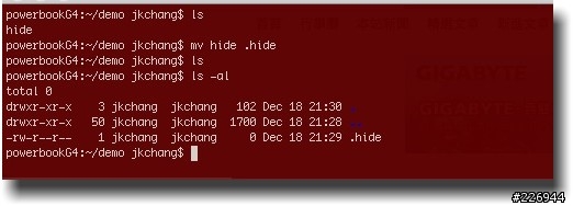 我用終端機模式將檔名或目錄名稱改為 "." 開頭的命名方式: