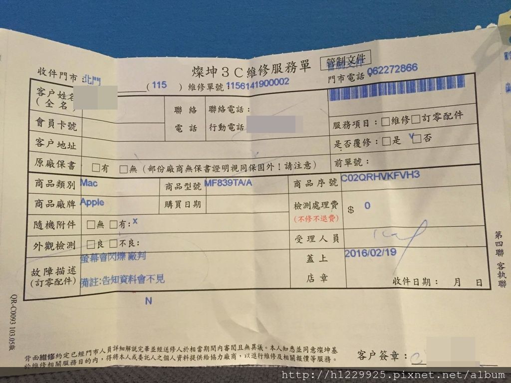 接著我們就送修電腦,櫃台表示會調物料,更換整個上蓋的部分 (螢幕那一整塊)