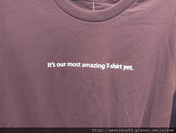 紀念T的上面都會有一些很惡搞的字眼,這句是蘋果每次發表會最常用的句子“我們目前最令人驚喜的.........T-shirt!”