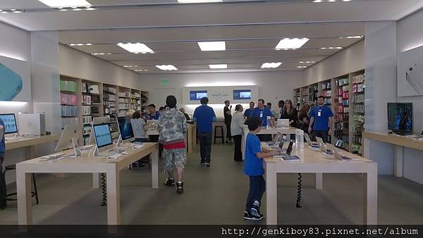 之前一路從舊金山往南排,地點再轉移回舊金山附近,這家店也是我的“鄰居”,在美國的後期因為搬離了舊金山市區,往南邊一點的城市搬,來到了San Mateo這個地方,而這邊的Apple store就在我住的地方路口的購物中心裡面,踏出家門到店門口約莫............3分鐘!所以也是跟走灶腳一樣,沒事幹就去晃晃,當然在新機開賣的時候也有去這邊排隊搶頭香。
