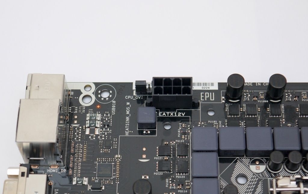 EPS 12v 8pin 位於左上角,旁邊可以看到 over voltage jumper