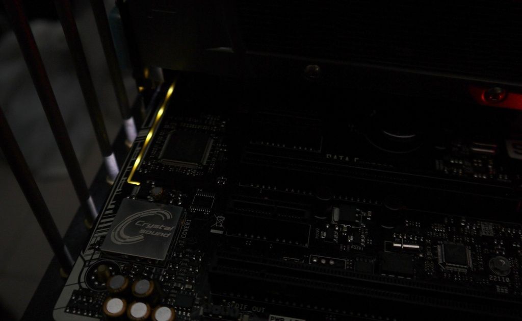 雖然在 PCH 散熱片部分沒有加上 LED 背光,在 PCB 切割處還是有加上小小的燈光效果
