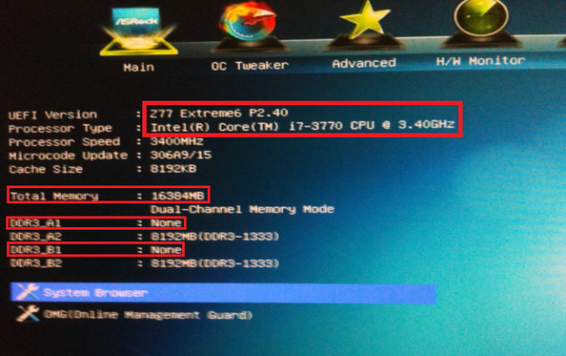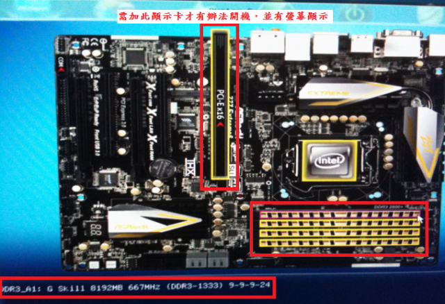 kelven8116 wrote:內顯不是做在CPU內...(恕刪) 下面的圖片不知有沒有辦法讓各位更了解我的問題!1.必須另外插顯卡,螢幕才會有畫面!內顯的部分,不論插VGA, DVI,或DP均無訊號且無畫面。2.全部32G記憶體,system browser和AIDA64均可看見插了4支8G記憶體,但真正能用只有16G,當只插A1及B1插槽時,A1及B1均可辨識及使用!唯獨4支插滿時,A1及B1可辨識卻無法使用!因本身是資安領域的原廠工程師,常常需要利用VM來測試東西,不打遊戲,卻須長時間開機,所以當初只用內顯,另一方面還可以省電!還煩請各位幫忙判斷問題,以早日解決這傷腦筋的狀況,感謝!另外該部機器已使用5個多月都不曾發生過任何問題,唯獨在BIOS升級2.40之後2、3天才發生此情形!