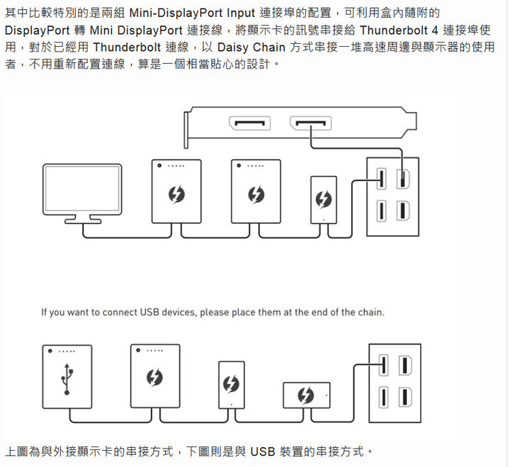 陳拔 wrote:吼,內文沒看仔細喔,Mini...(恕刪) 是這張圖嗎? 請問這樣的用法(顯卡輸出接到板子的miniDP再從TB4輸出)是業界主流嗎? 還是MSI專為本版設計的特殊的創新之舉? 感謝確認