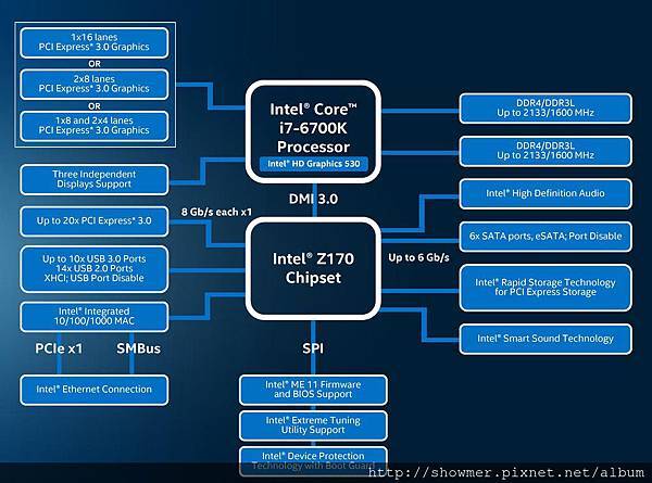在 Z170 平台,PCIe 3.0 的通道數一口氣推到了最高達 20 條