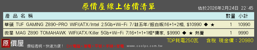 一個是 微星 MAG Z890 TOMAHAWK WIFI
