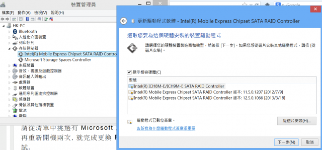 chihbr wrote:最令我費解的是,我系統剛裝好的時候我用測試軟體,總分還可以達到八百多分而當我裝完我需要的軟體之後,分數就掉下五百多分,尤其是4K的寫入掉的幾乎一半以上,真是納悶。 請先開啟 裝置管理員 並展開 RAID 的相關裝置, 並貼圖上來, 我再想想要如何更換為WIN8 內建的 RAID 驅動程式.