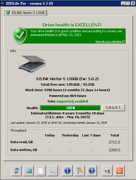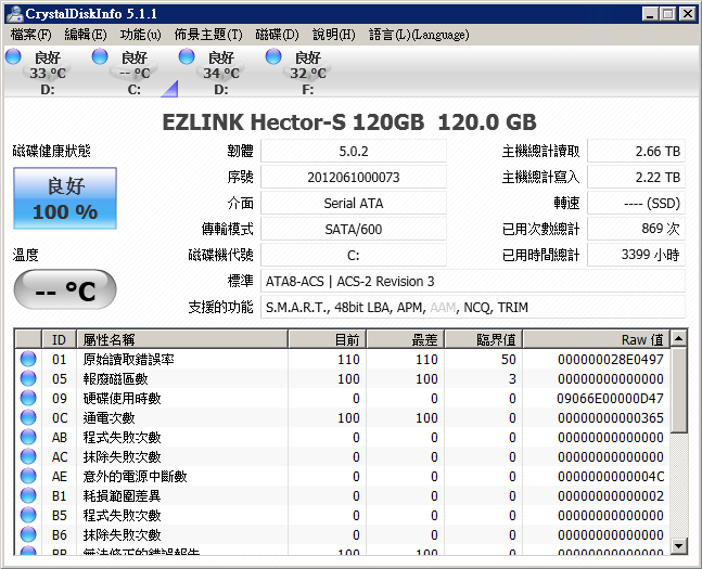 兩年前買的APU筆電 一年半前買的創見340 120g 穩定使用中~較新的桌機 G3258 + M6S 120G + PrimoCache (Beta)健康~ 寫入2300 GB 有用記憶體Cache軟體