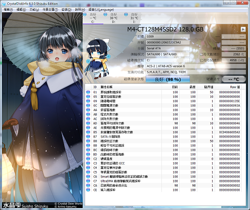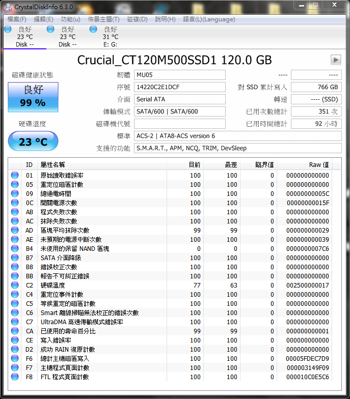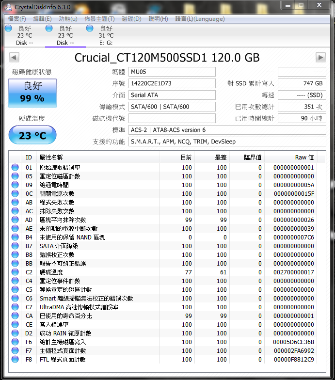 changpizz wrote:半年掉2%這可不表示...(恕刪) 原來SSD這麼多眉角,收穫良多!Crucial M500 據說因為顆粒拉低效能,當時因為特價所以直接買了兩顆來組共 $3,998去年9月開始使用,用作系統碟。我是覺得日常使用上夠快了。
