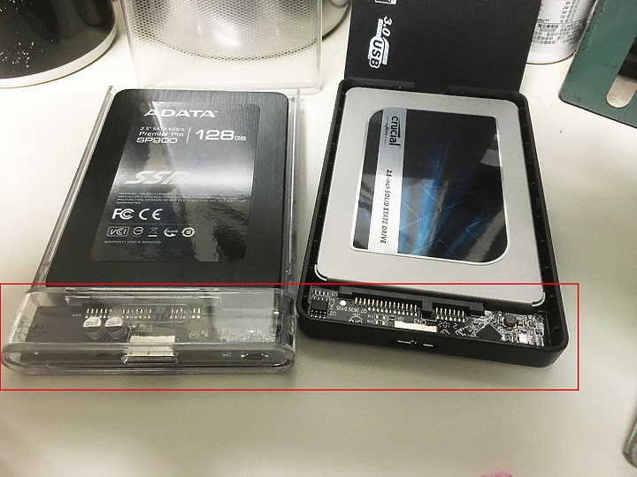 easy37go wrote:求救!!!買了2.5(恕刪) 類似你那種我也有買幾個, 當初是認為透明容易看到裡面裝什麼 ? (因為有多個,容易分辨.)後來再次買,選擇幾個全黑的, 約透明的一半價格.以上都不是 ORICO奧睿科廠牌.由下面圖片紅框處, 可以看出最大不同差異.透明的多了一段上殼, 不透明的沒有這段上殼.沒有這段上殼,在無上殼時,將外殼反面,裏面的 SSD 自然往下掉,容易取出 ...不常換裏面硬碟的話, 兩種外殼都非常好用.如果是裝 2.5" 傳統硬碟, 就要買能外接電源的外殼, 貴很多.常換硬碟,最好用的是這種大小通用( 2.5", 3.5"), 缺點是要供電,才能使用.