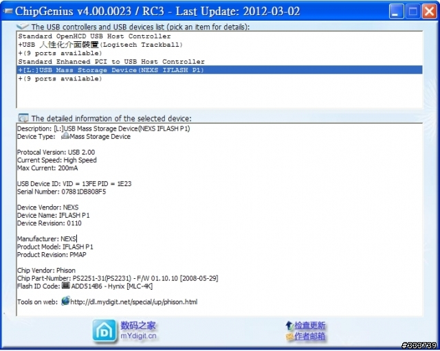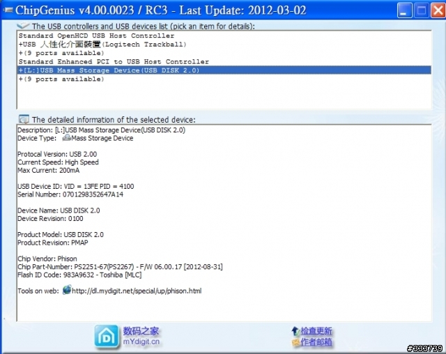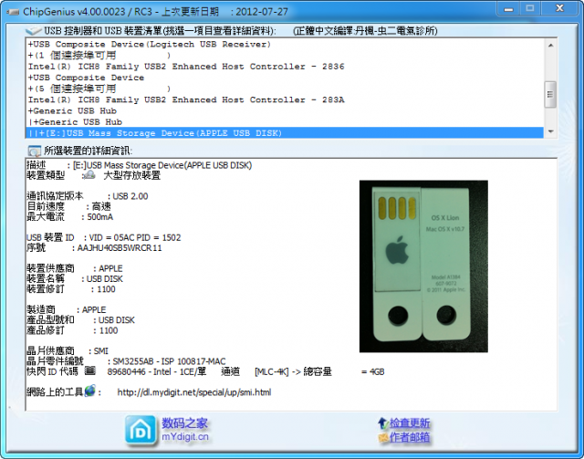 Apotop AP-U3 USB 3.0 鋁碟 32GB 2013/1/18 購入ChipGenius跑出結果為Samsung K9CFGD8U5M - 4CE/Single Channel [TLC-8K Toggle-DDR] -> Total Capacity = 32GB
