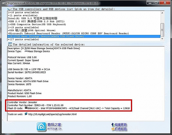 也下手買了一顆 UV150 128G 黑的使用電腦:CPU: i5-4440 3.1GHz (1150 腳位, Haswell)主機板: 技嘉 H87M-D3H記憶體: DDR3 8G x 2作業系統: Windows 7 x64, 幾近包含全部的升級包作業系統碟: Crucial MX200 512G SSD感覺 Sandisk 顆粒讀寫效率比 Intel 來的好, 尤其是寫入.而我這次買到的 Intel MLC 感覺又比之前的讀寫來的稍慢些.USB UV150 格式是買來愈設的 FAT32, 下面就看圖說故事.ChipGenius 查看顆粒與控制晶片: Intel MLC + 銀燦 Innostor IS-903-A5CrystakDiskMark 跑分, 這是相對低的分數截圖自己跑了好幾次, 也有截圖, 讀寫效率約: 讀: 213~206MB/s 寫: 141~142.8MB/sATTO Disk Benchmark