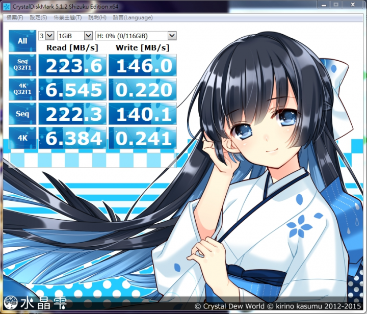 趁前幾天Yahoo購物特價加上折價金,一支649入手大檔讀寫、小檔讀取都很不錯,可是小檔寫入就很慘烈了,速度波動很大,不曉得跟4K寫入太爛有沒有關係?CrystalDiskMarkChipGenius大檔寫入(3.7GB)大檔讀取(3.7GB)小檔讀取(5MB x 200)小檔寫入(5MB x 200)