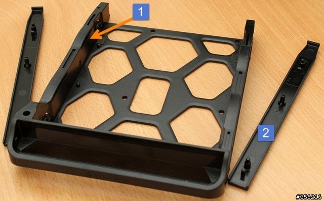 yenchee wrote:出聲音的部分好像式硬碟支架和裡面鐵框互撞那個支架做的實在太爛, 塑膠的強度根本就不夠, 卡榫又是塑膠的...(恕刪) 剛才看了一下DS214play 的 HD Tray, 這個 tray 應該是跟 ds414 是相同的. 以下圖片取自網路.並非塑膠強度不夠, 而是 HD tray 和內部的鐵架的 tolerance 太大了, 如上圖, 問題出在箭頭1處它有設計塑膠彈片, 但它並沒有確實的頂住 NAS 內部鐵架, 造成有些許搖晃的情況, 這在 2bay 時可能沒有問題, 但 4bay 加上高轉速的硬碟造成共振, 異音就出來了.另外標記第二處的邊條, 實際上也可以再加上塑膠彈片的設計, (硬碟尾部因為有SATA+POWER connector 跟背板卡住, 但前方現並沒有實際頂緊), 這樣 HD Tray 就牢牢的和 NAS 內部鐵架 match 在一起了. 只要小小修正一下, 應該就不會有問題了. (數字二的邊條模具重開,有異音的人換了應該就解決了)