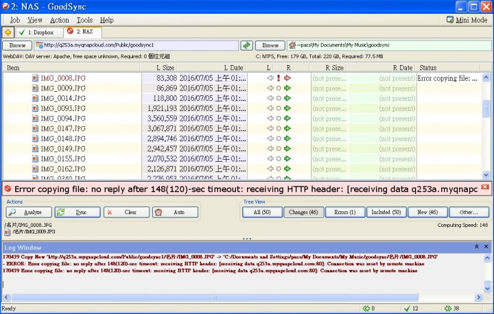 geneo99 wrote:如果 NAS 開啟 ...(恕刪) nas有開ftp服務不過我發現goodsync對qnap nas的支援不好所以沒辦法做到雙向同步而且goodsync qpkg也沒辦法安裝後來把owncloud移除掉在裝一次就沒有出現錯誤訊息了可是用了幾天發現owncloud有點兩光有時候不會同步還要自己檢查才知道所以現在乾脆把goodsync裝在pc上面window版的goodsync功能正常直接用pc goodsync去同步dropbox果然可以做到即時雙向同步如果沒有dropbox的話用goodsync是可以取代它的功能的