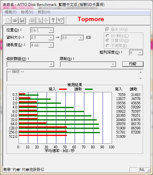 clhung0 wrote:同樣測試環境 金士頓那張寫的速度不到10M 遠小於廣告標榜的45M 所以今天給退了在收到Kingstone這張卡後,放到筆電內複製資料時,覺得比Topmore那張慢多了;這才測試一下的,沒想的差這麼多。另一張Topmore的表現就不錯,我在特價時買的 算是賺到了 換成新版的ATTO 2.46後再重測看看吧傳輸大小&檔案長度 也請改回預設的 0.5~8192KB 與 256mbfin60 wrote:一樣PC家買的特價中...(恕刪) 用手機測當然測不出該TF卡完整性能要馬就接在USB3.0讀卡機 或是 PCIe介面的SD讀卡器