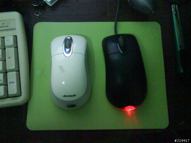 我有微軟光學極動鯊跟無線光學冰珀鯊,大約都是民國91年底或92年初買的是先有極動鯊的,覺得很好用但是有條線覺得挺不方便想說無線這麼貴應該同時擁有無線跟準確的好處買來一用,結果阿娘喂...無線光學冰珀鯊被我冷凍到今天