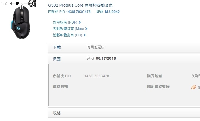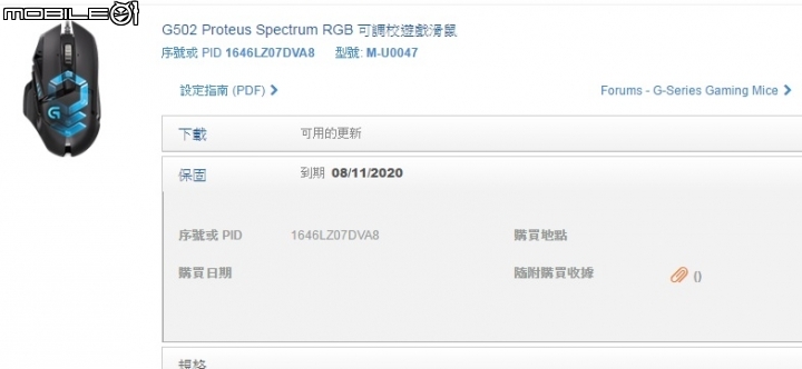 故送來的是RGB版的G502,然後重新註冊後是2020到期