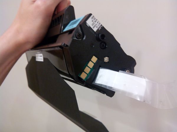 將碳粉夾放回原位時,稍微用一點點力,會有一個卡住的感覺。碳粉夾就位囉。