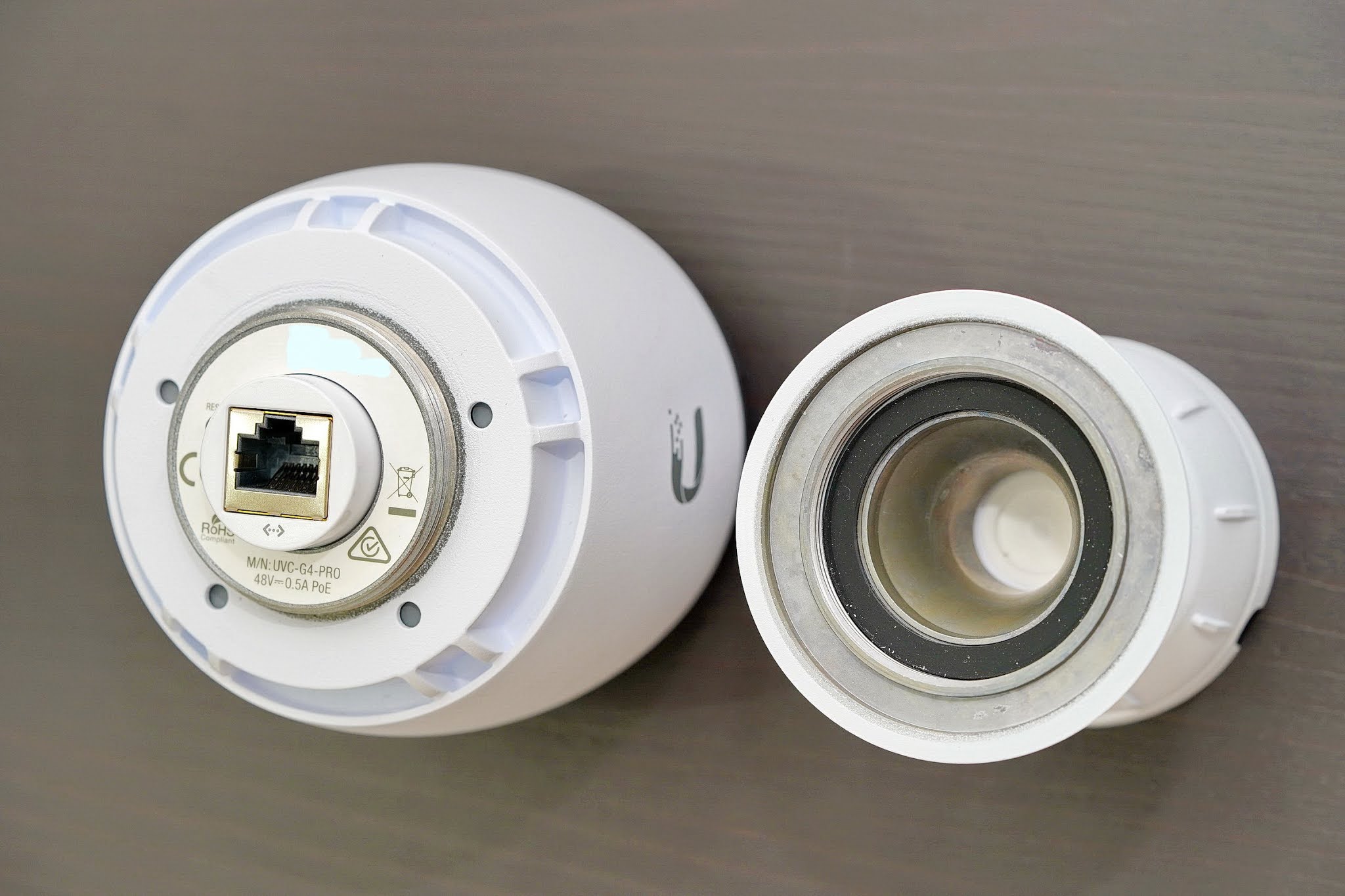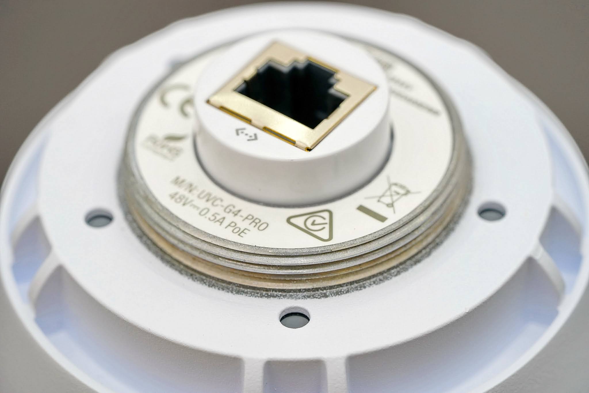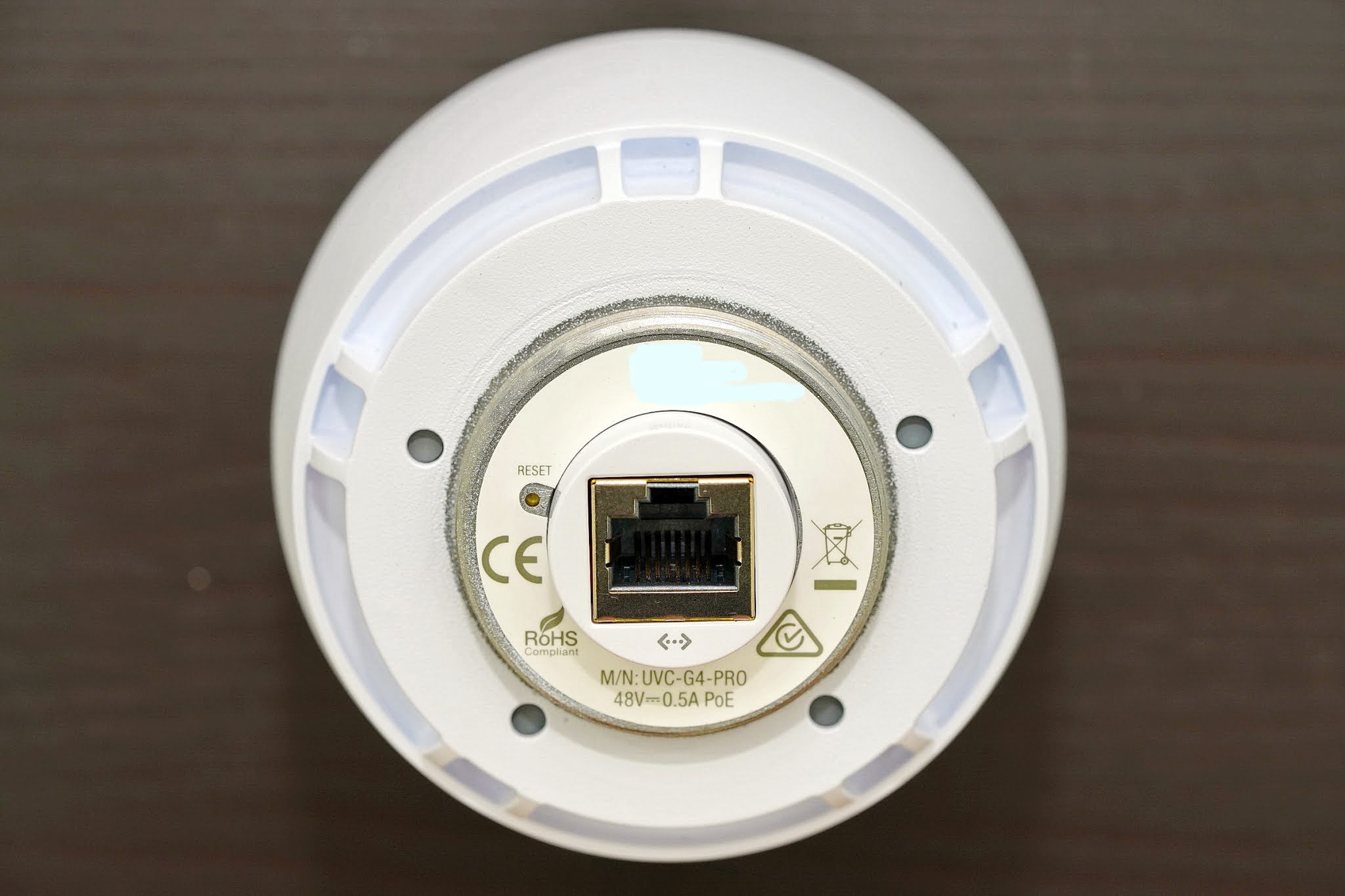 G4 Pro本體後端的RJ45孔,同時負責1Gbps資訊傳輸以及POE供電,目前所有UniFi攝影機,除了G3 Micro以外,都是有線傳輸+POE供電的設置。
