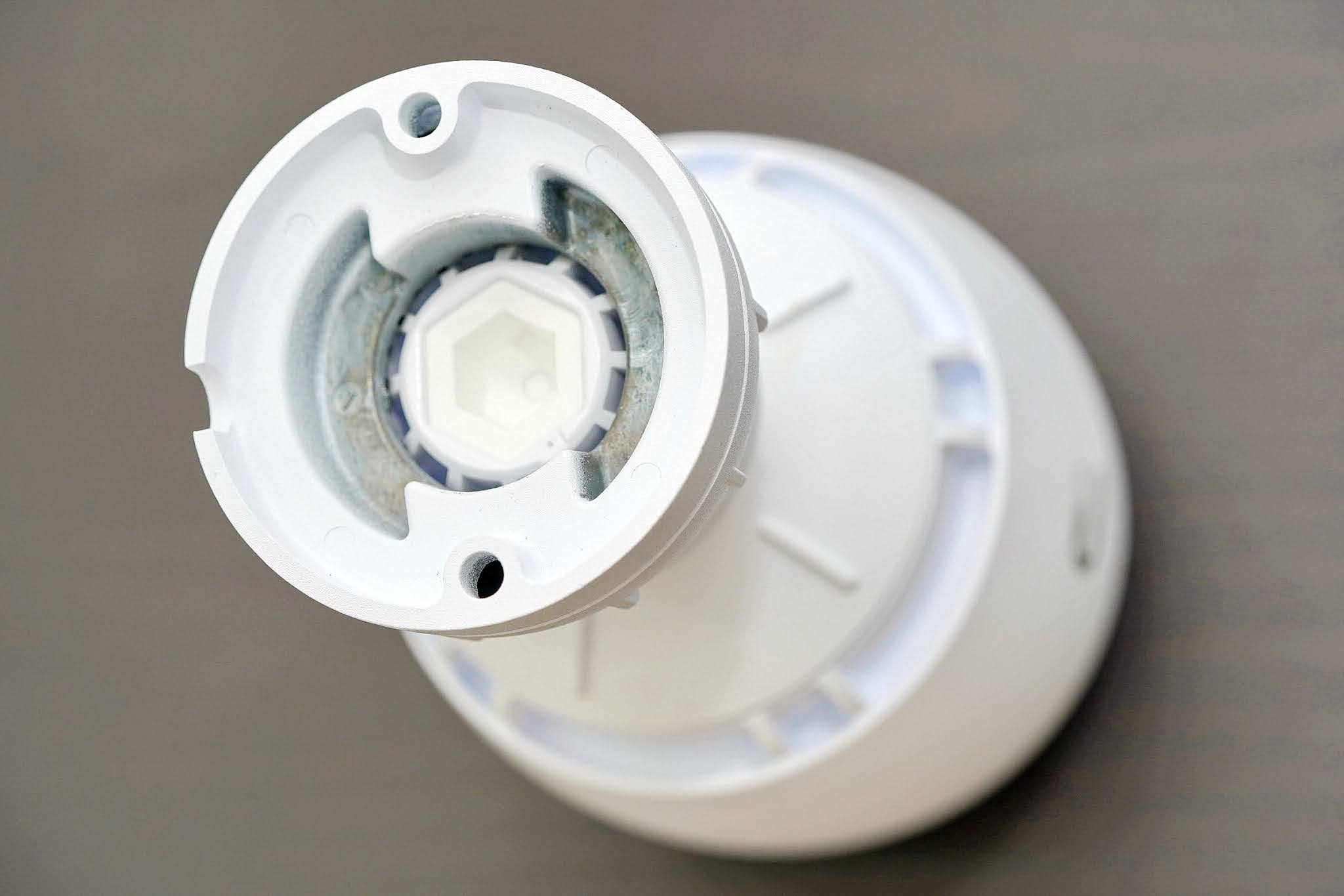 本體後端的萬象球座內有一個防水塞,可供網路線穿過。