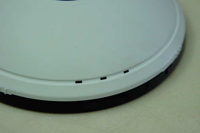 照片中最左邊的小方孔,是DCS-6010L2的麥克風。旁邊的兩個指示燈,從左到右分別是WPS 狀態指示燈和電源/連線指示燈。