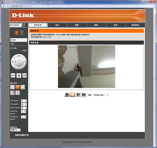 離開設定畫面到主畫面中,就可以看到我這台DCS-6010L的即時監控畫面了。