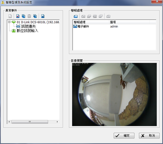 像我選擇訊號遺失事件後,接著設定當事件發生時的處理方式。以這個事件來說,我是選擇發送e-mail到admin帳號中設定的e-mail信箱。
