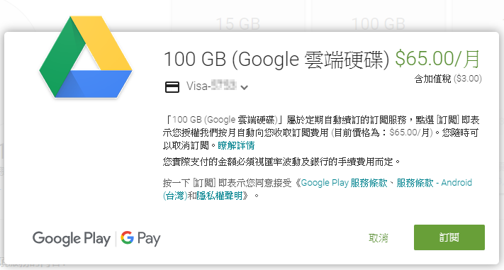 2.要如何去買100g的google備份雲端硬碟 要用atm轉帳才行?