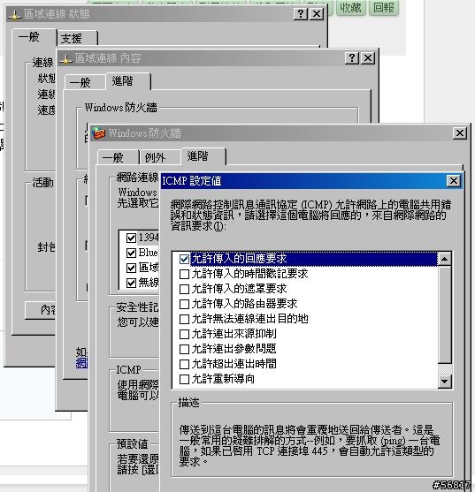 viccheng1925 wrote:內部PING正常,應...(恕刪) 1樓已經有說明原先是用分享器,因Tunnelbroker.net要做ICMP檢查卻又無法通過,才改用電腦PPPoE撥號..但電腦PPPoE撥號又不行才又動數據機(P883)內部的ICMP設定,不但改ICMP設定無效,改Access Control同樣沒用...才一直覺得很納悶是那出的問題,總不會是中華電信機房吧!